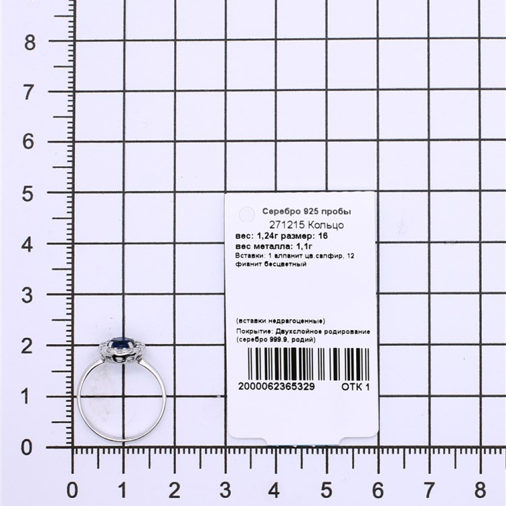 - Характеристика 1 алпанит цв.сапфир, 12 фианит бесцветный