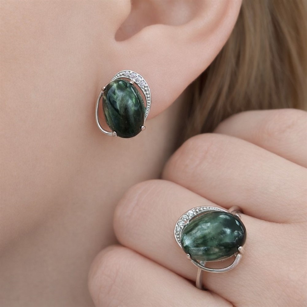 - Характеристика 1 клинохлор натуральный, 4 фианит бесцветный