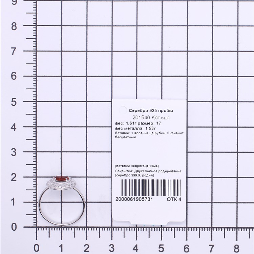 - Характеристика 1 алпанит цв.рубин, 8 фианит бесцветный