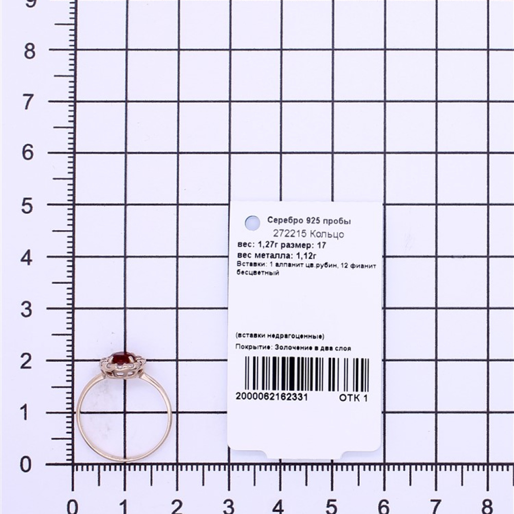 - Характеристика 1 алпанит цв.рубин, 12 фианит бесцветный