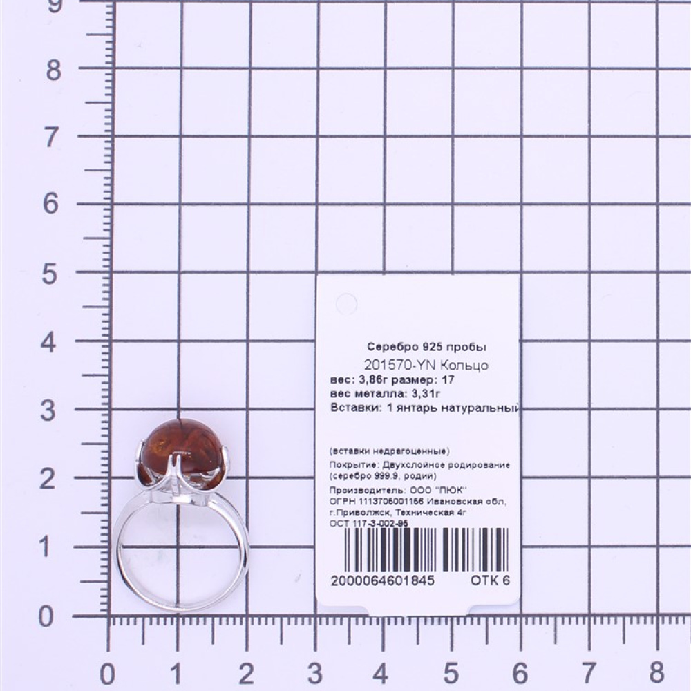 Серебряное Кольцо с янтарем 925 пробы 201570-YN