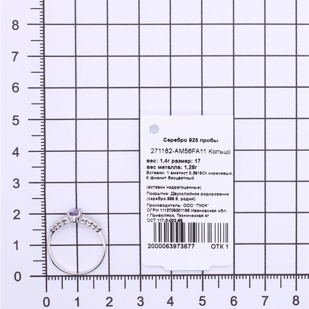 - Характеристика 1 аметист сиреневый, 8 фианит бесцветный