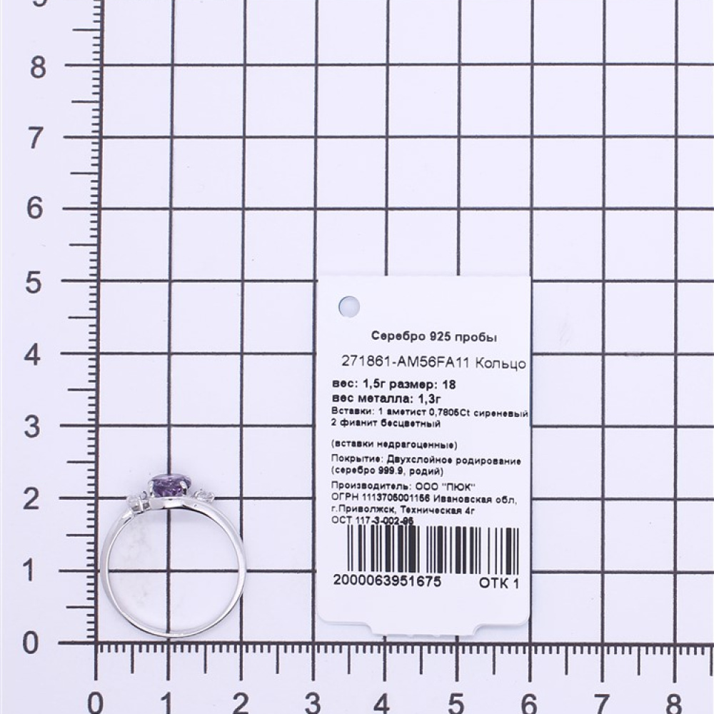 - Характеристика 1 аметист сиреневый, 2 фианит бесцветный