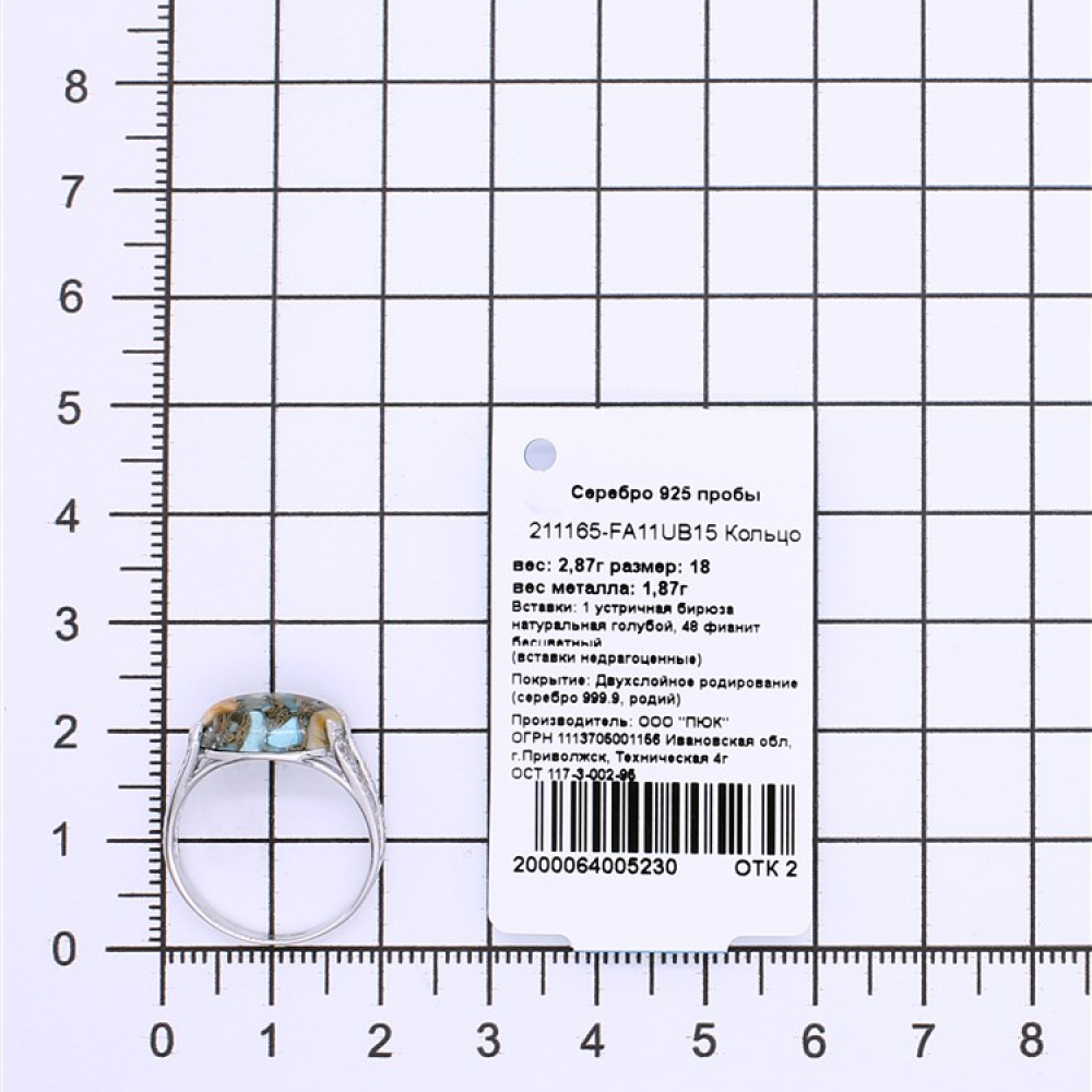 - Характеристика 1 устричная бирюза натуральная голубой, 48 фианит бесцветный