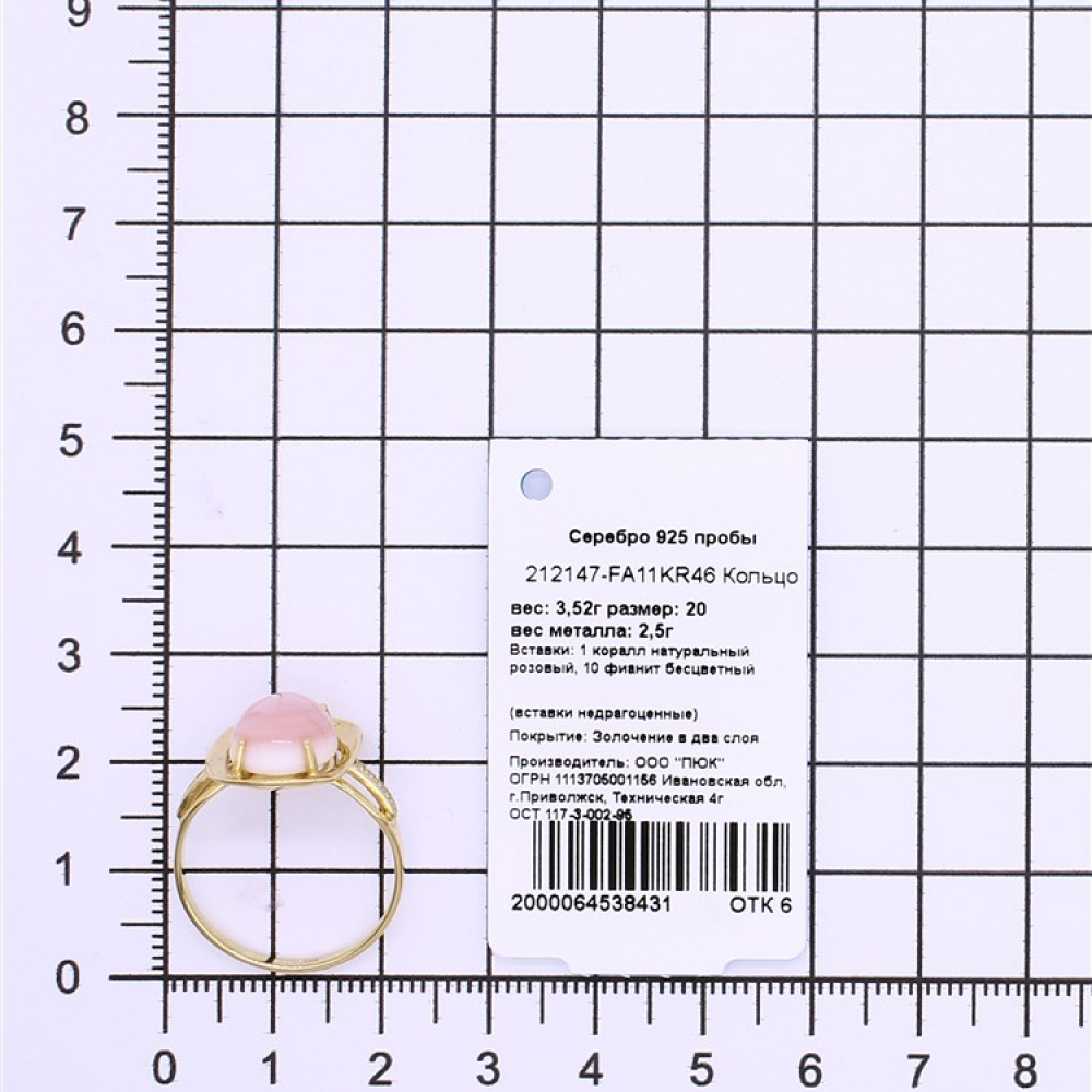- Характеристика 1 коралл натуральный розовый, 10 фианит бесцветный