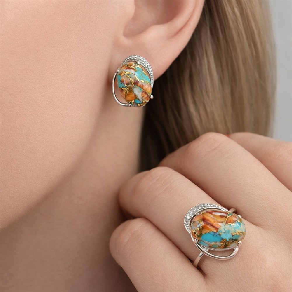 - Характеристика 1 устричная бирюза натуральная голубой, 4 фианит бесцветный