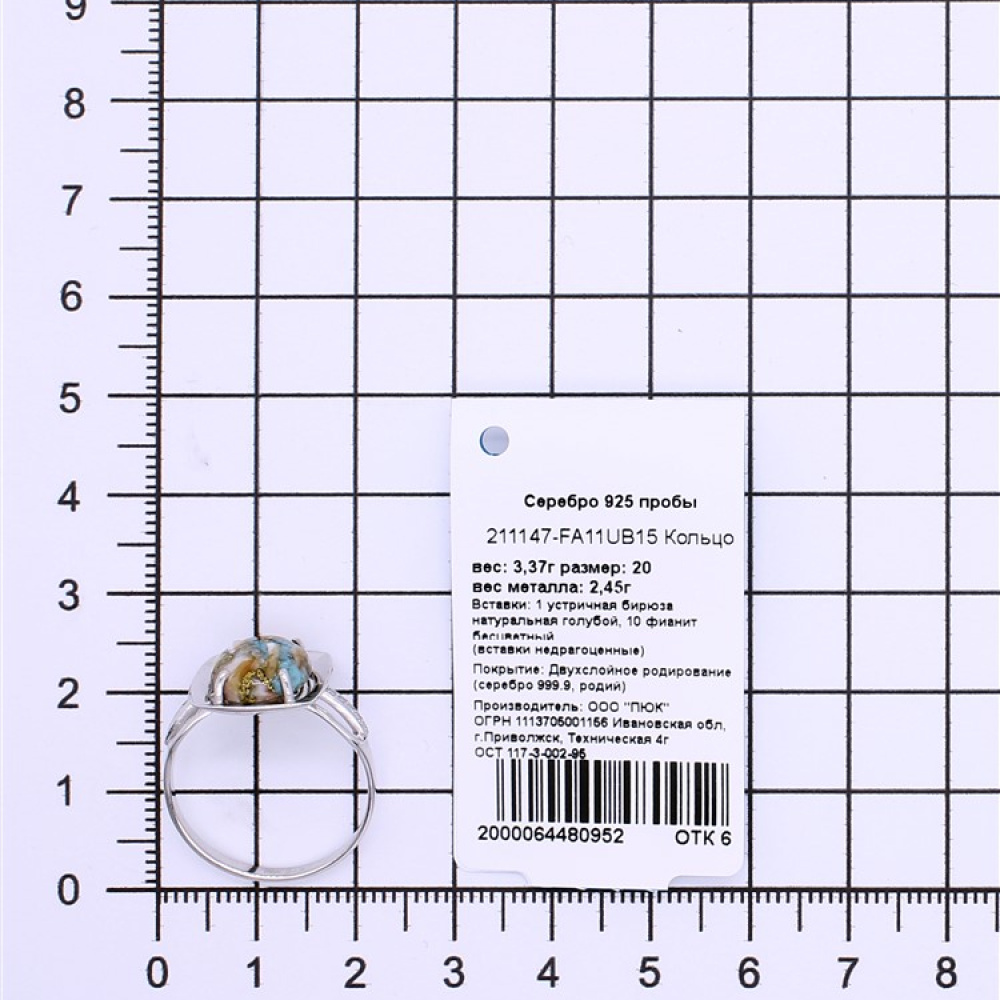 - Характеристика 1 устричная бирюза натуральная голубой, 10 фианит бесцветный