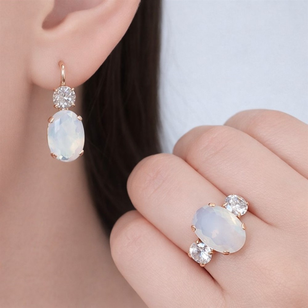 - Характеристика 1 алпанит лунный белый, 2 фианит бесцветный