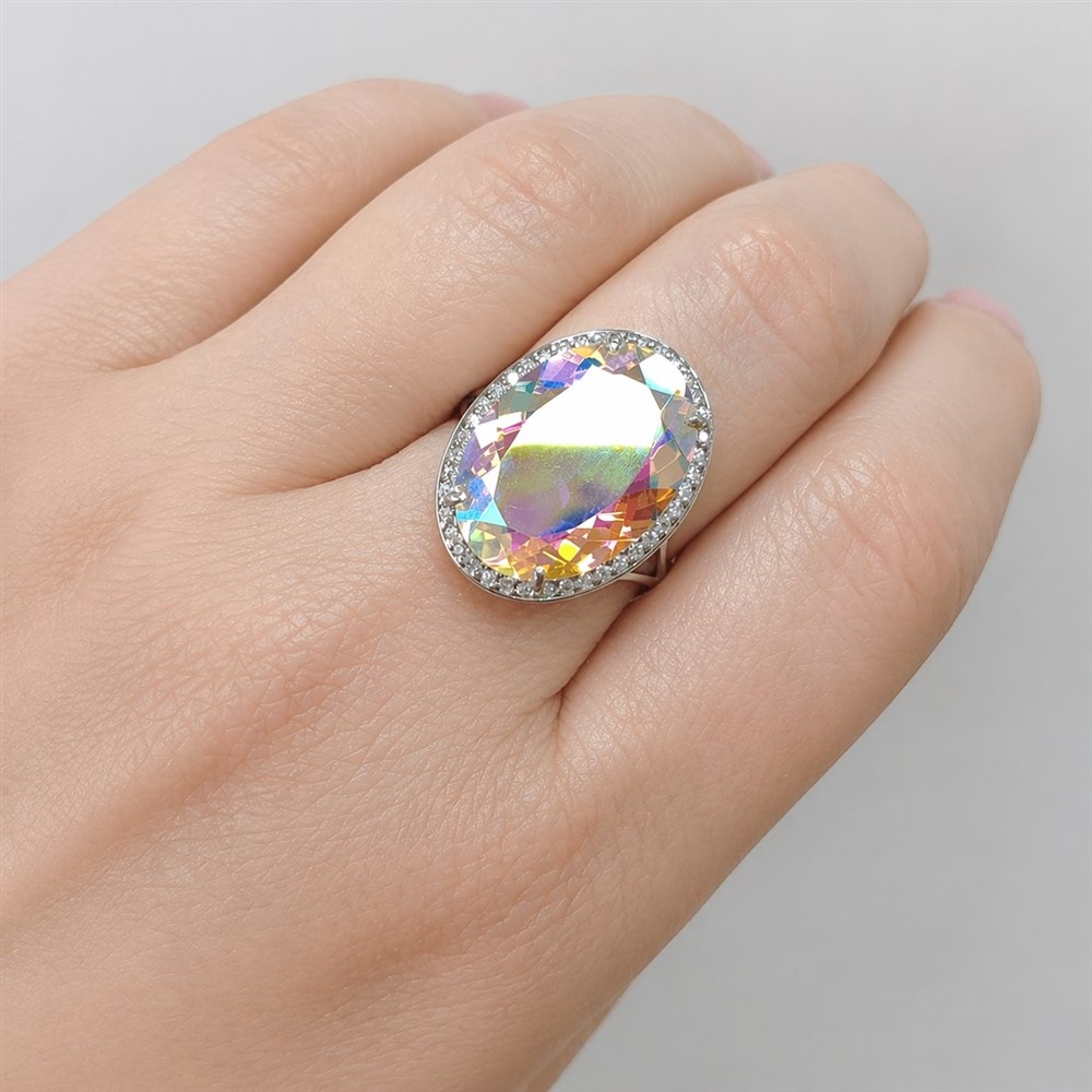 - Характеристика 1 горный хрусталь радужный, 40 фианит бесцветный