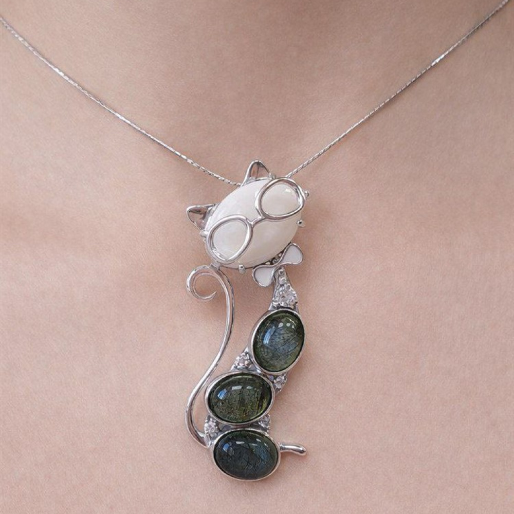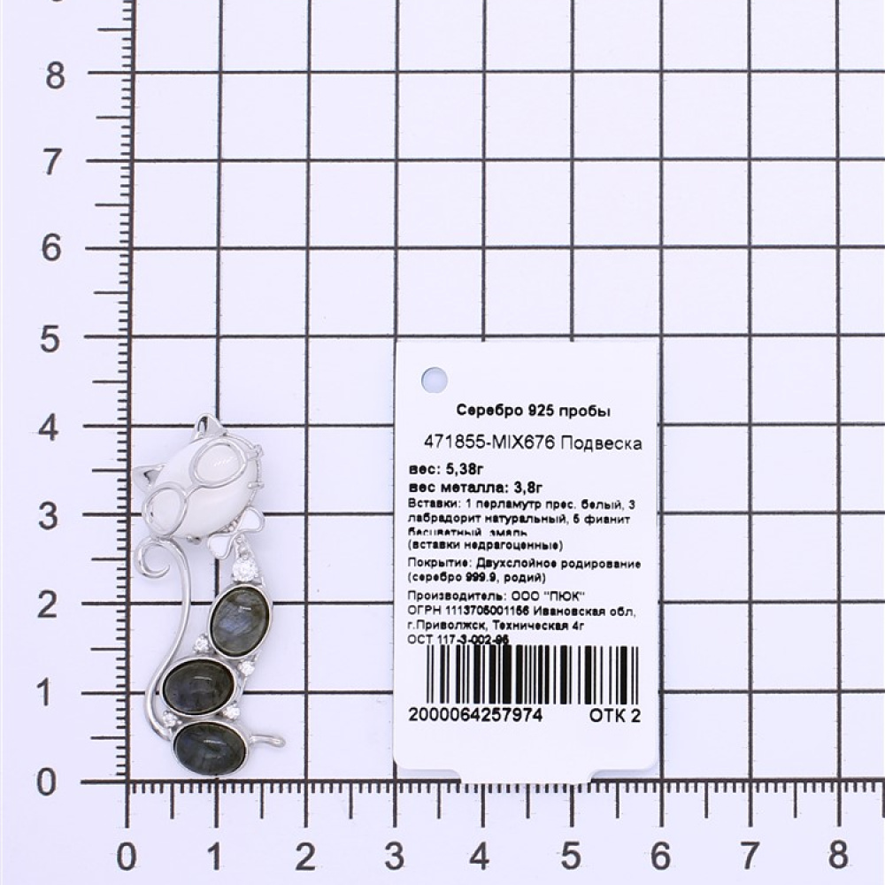 - Характеристика 1 перламутр прес. белый, 3 лабрадорит натуральный, 5 фианит бесцветный, эмаль