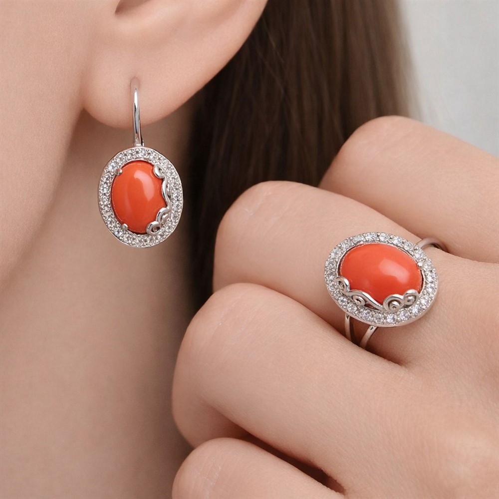 - Характеристика 2 коралл натуральный, 44 фианит бесцветный