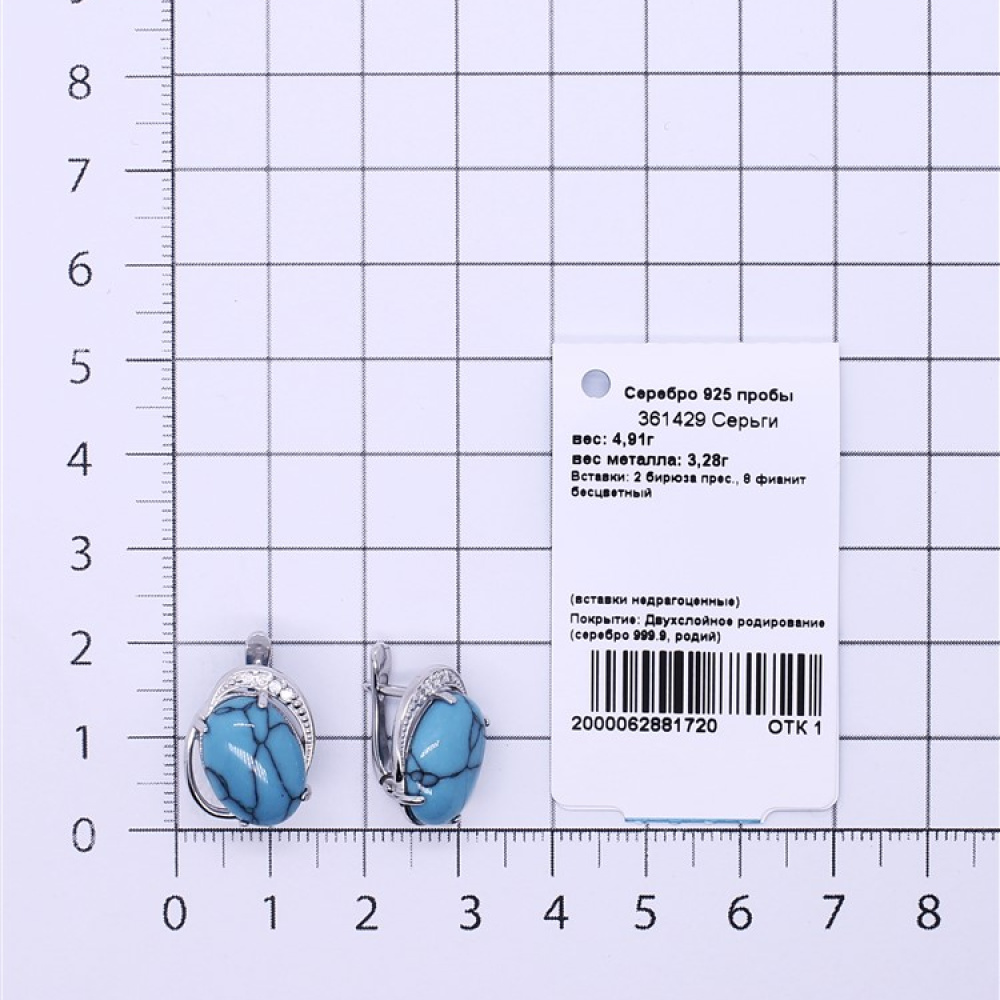 - Вставка фианит, бирюза