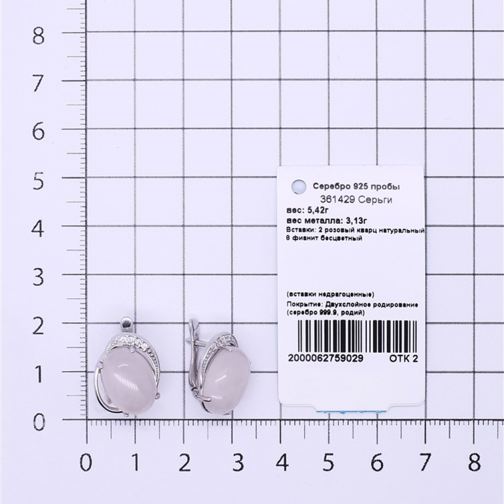 - Характеристика 2 розовый кварц натуральный, 8 фианит бесцветный