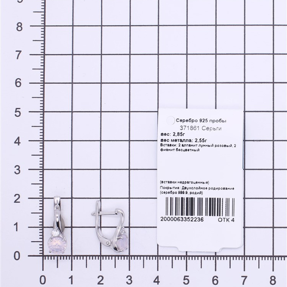 - Характеристика 2 алпанит лунный розовый, 2 фианит бесцветный