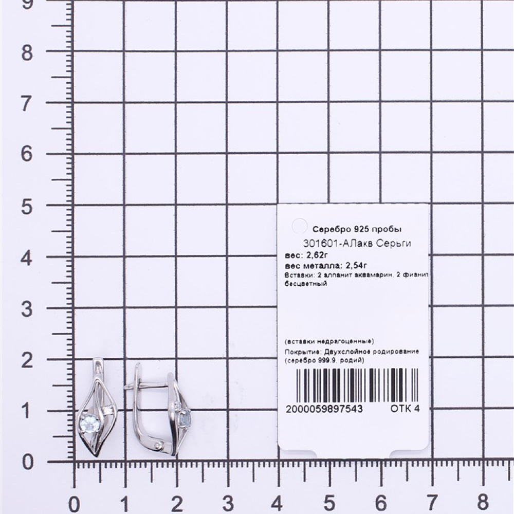 - Характеристика 2 алпанит аквамарин, 2 фианит бесцветный