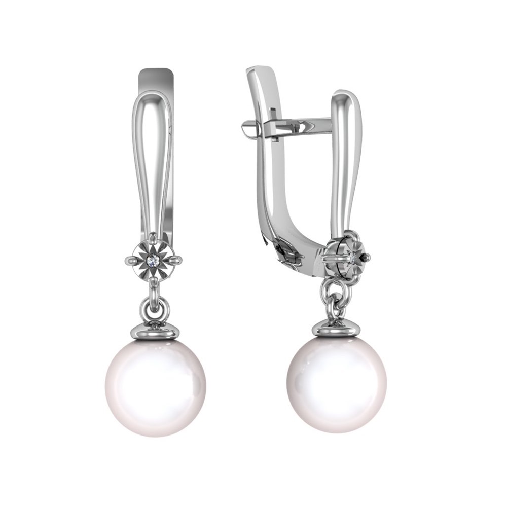 - Характеристика 2 жемчуг культ. белый, 2 фианит бесцветный