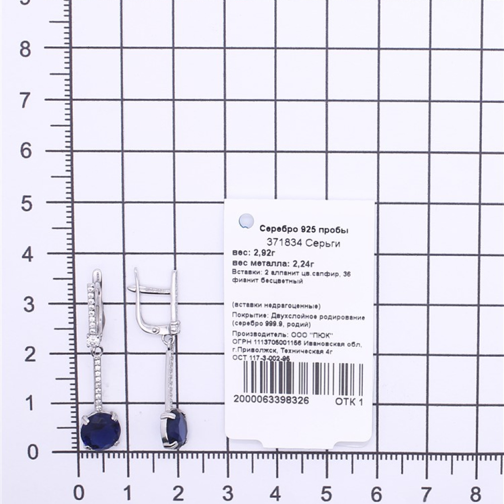 - Характеристика 2 алпанит цв.сапфир, 36 фианит бесцветный
