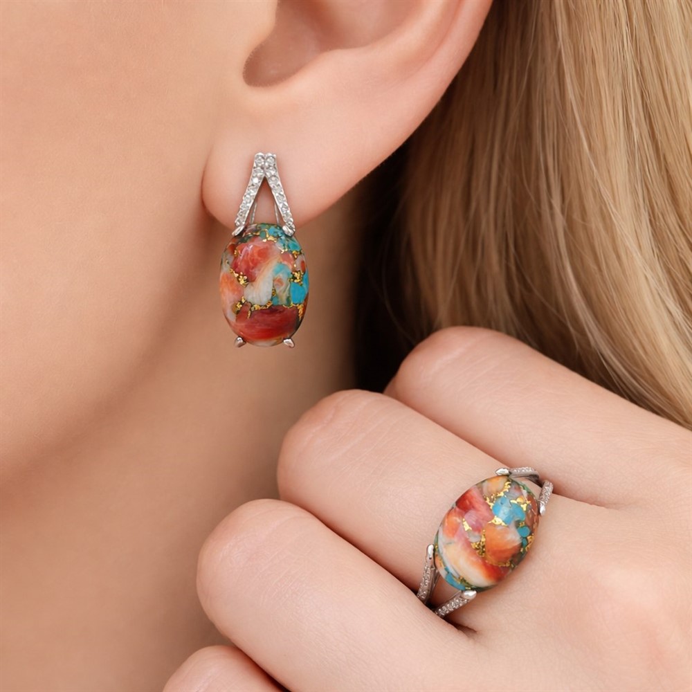 - Характеристика 2 устричная бирюза натуральная голубой, 32 фианит бесцветный