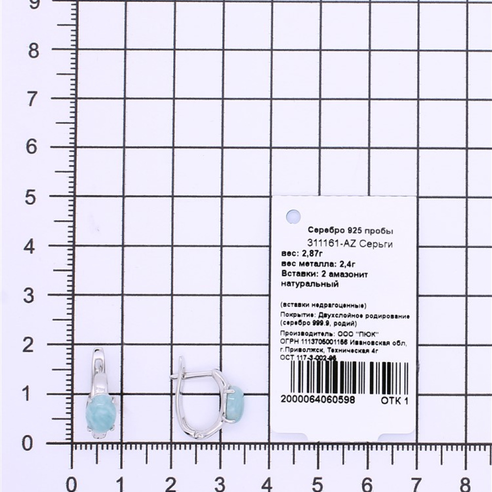Серебряные Серьги с амазонитами 925 пробы 311161-AZ