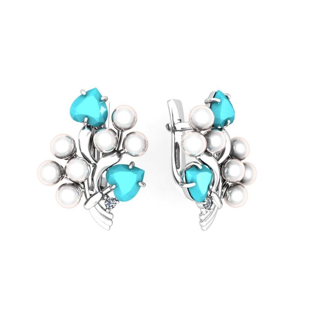 - Характеристика 2 фианит бесцветный, 4 бирюза прес., 14 жемчуг культ. белый