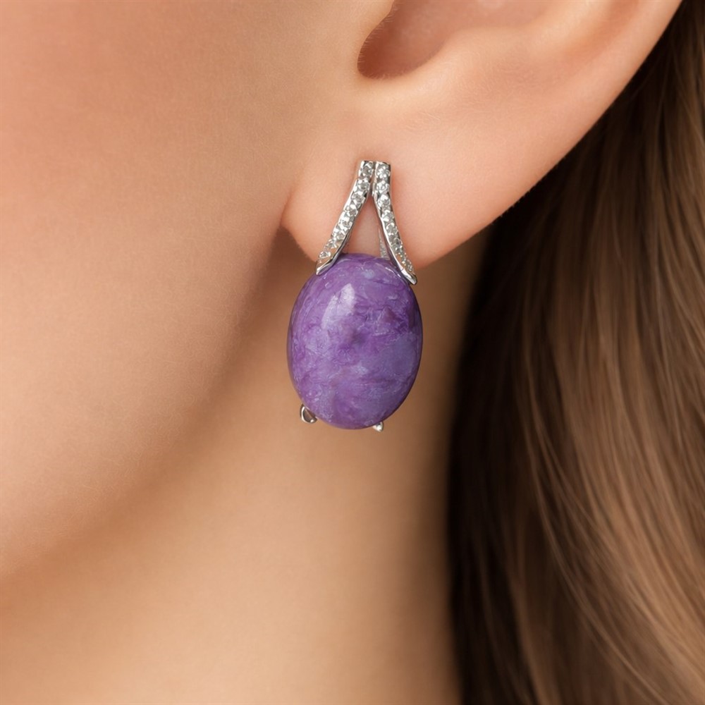 - Характеристика 2 чароит натуральный, 32 фианит бесцветный