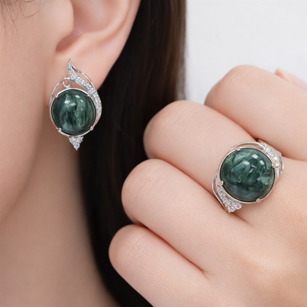 - Характеристика 1 клинохлор натуральный, 12 фианит бесцветный