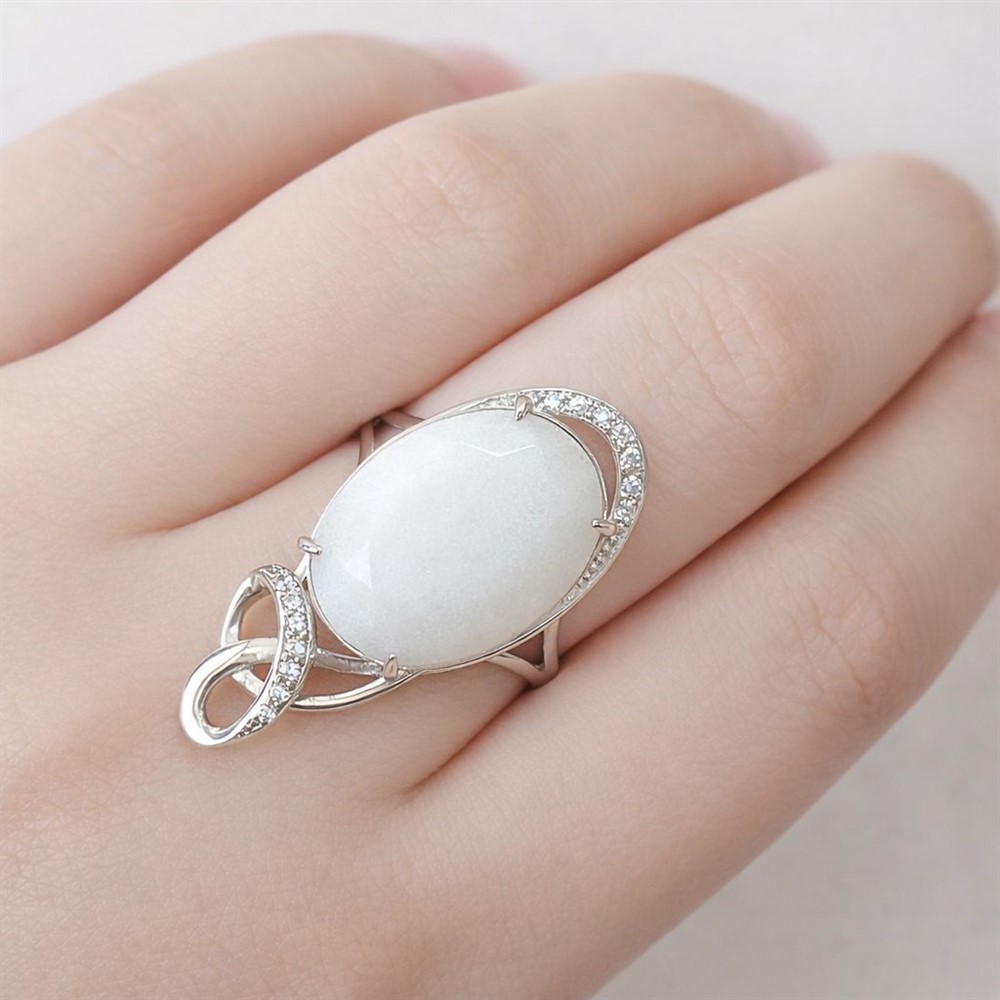 - Характеристика 1 нефрит натуральный белый, 14 фианит бесцветный