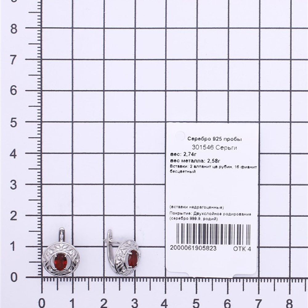 Серьги из Серебра 925 Приволжский ювелир арт. 301546-FA11FA49, Родирование.