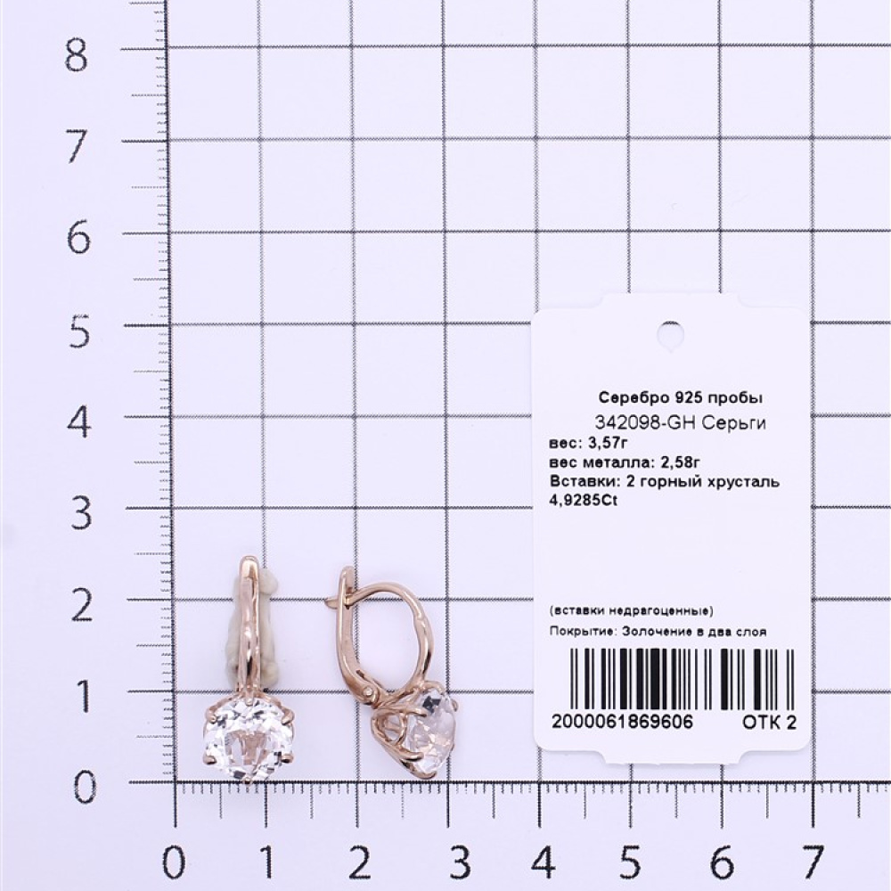 Серебряные Серьги с горным хрусталем 925 пробы 342098-GH